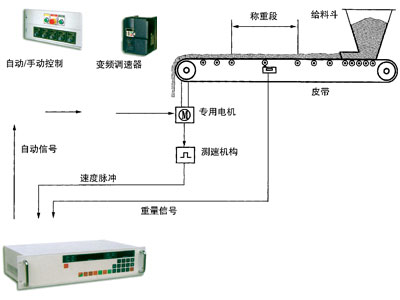 來自皮帶上物料的重量信號(hào)和皮帶運(yùn)行的速度信號(hào)被一同傳到HL500B(一機(jī)一路DCS接口)或PL3000(一機(jī)十六路)測(cè)量和控制系統(tǒng)中(HL500B和PL3000內(nèi)部均以微處理為核心)。通過連續(xù)不斷的比較設(shè)定值與皮帶實(shí)際輸送的物料重量,不停的調(diào)節(jié)皮帶運(yùn)行的速度。因此,使用物料流量總能穩(wěn)定在設(shè)定值上。